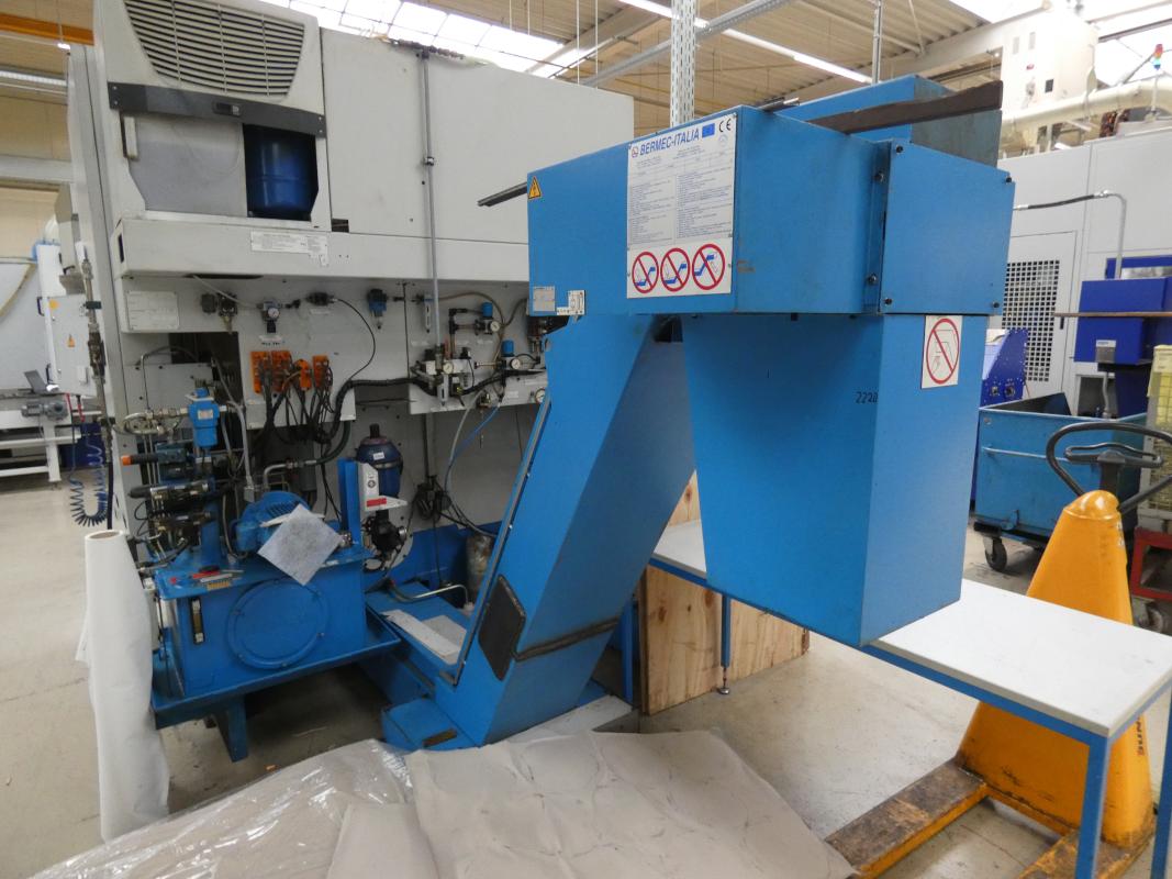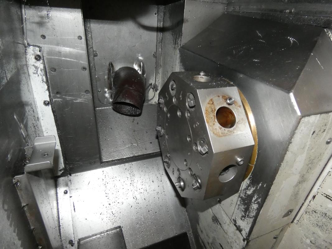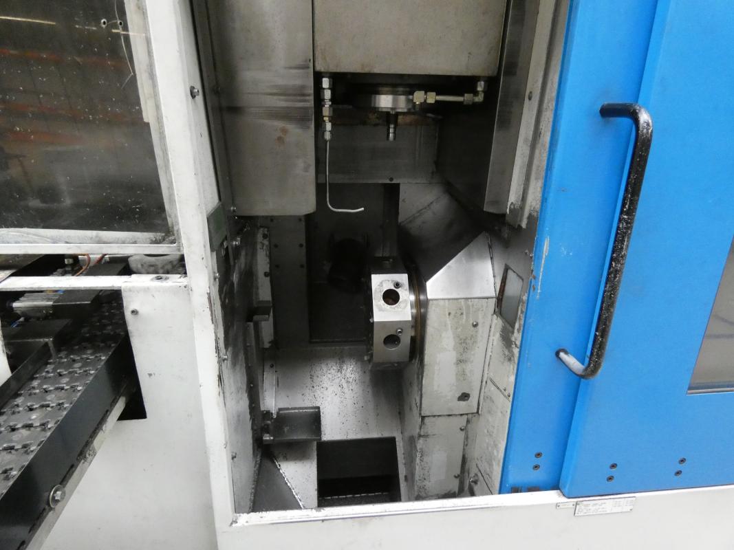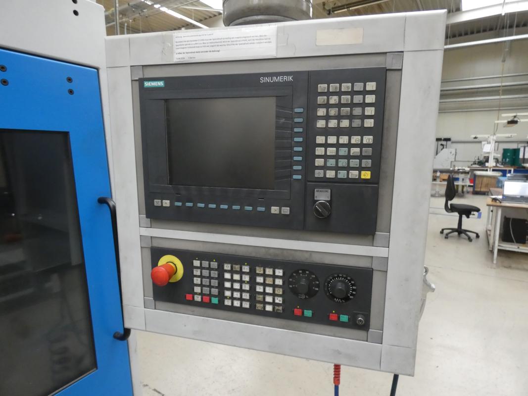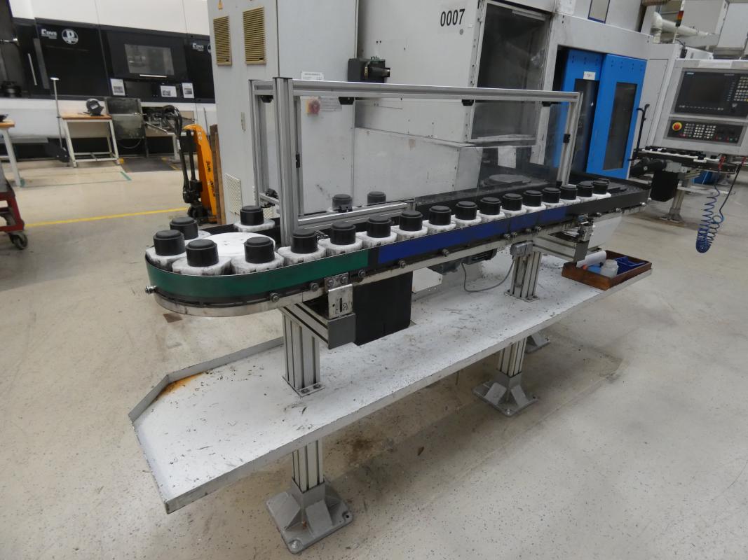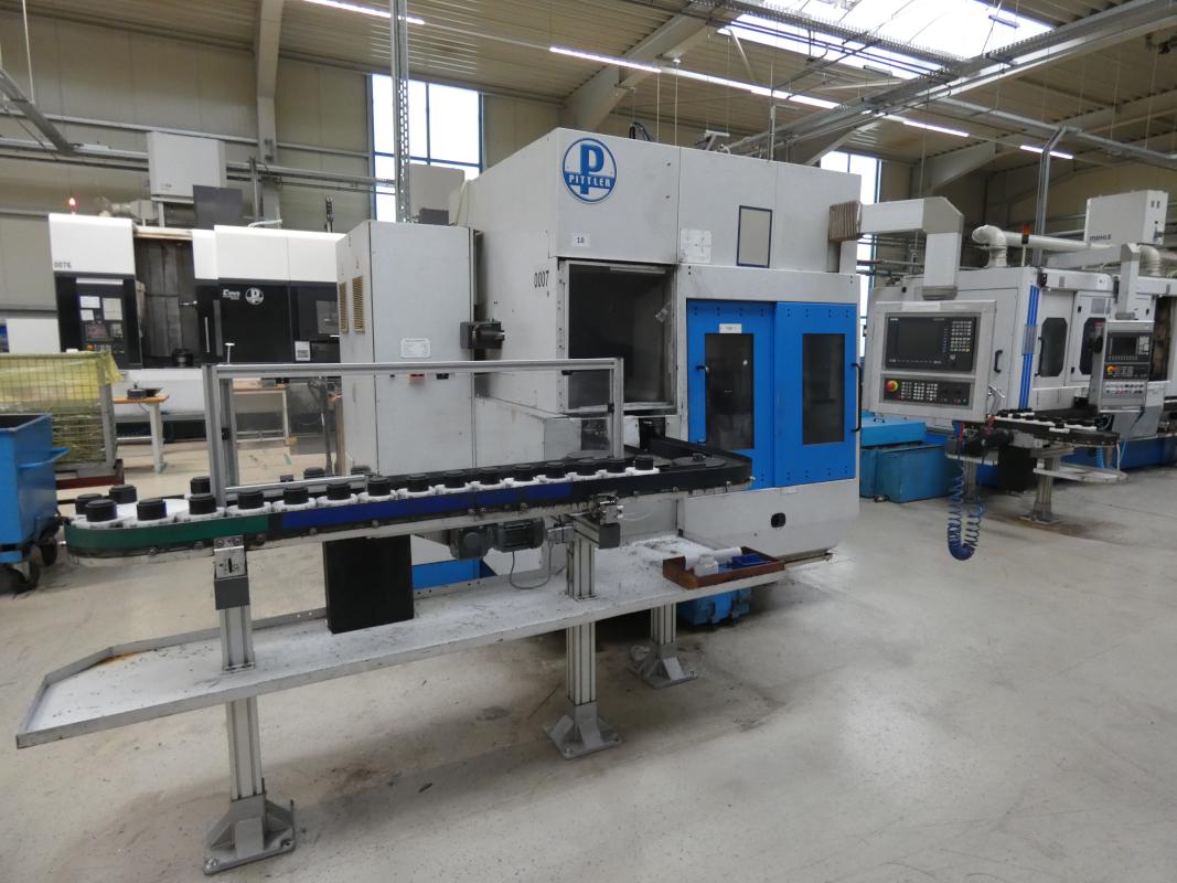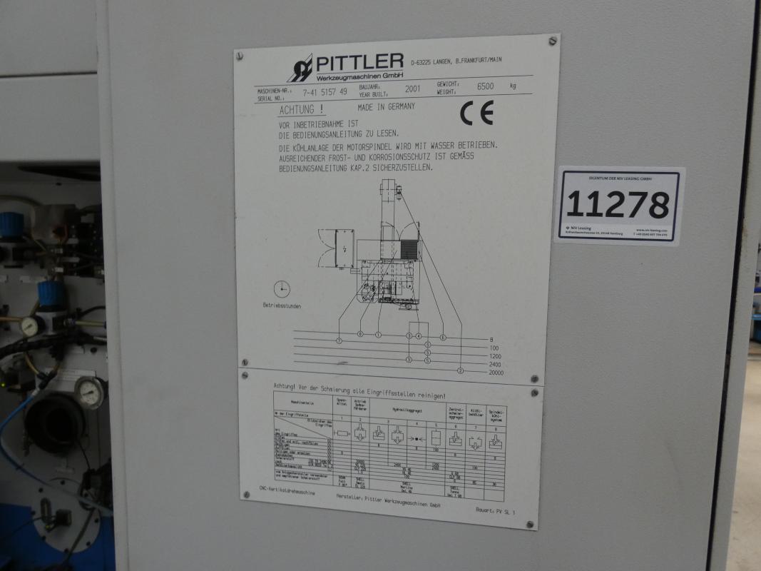 Make: PITTLER, Model: PV SL 1, Year of construction: 2001, Serial No. 7-41515749, Siemens Sinumerik control system, Sinumerik 840D, 2 axes X/Z, max. spindle speed 7,000 rpm, max. turning diameter 130 mm, max. workpiece height 50 mm, simultaneous operation, max. feed rates Z 24 m/min, X 40 m/min, three-jaw chuck, 8-position tool turret, VDI 40 tool holder, pallet conveyor approx. 5,000 mm long, loading and unloading system with chip conveyor, Knoll 225S-2, manufactured in 1999, cooling unit, Rittal SK3334.600