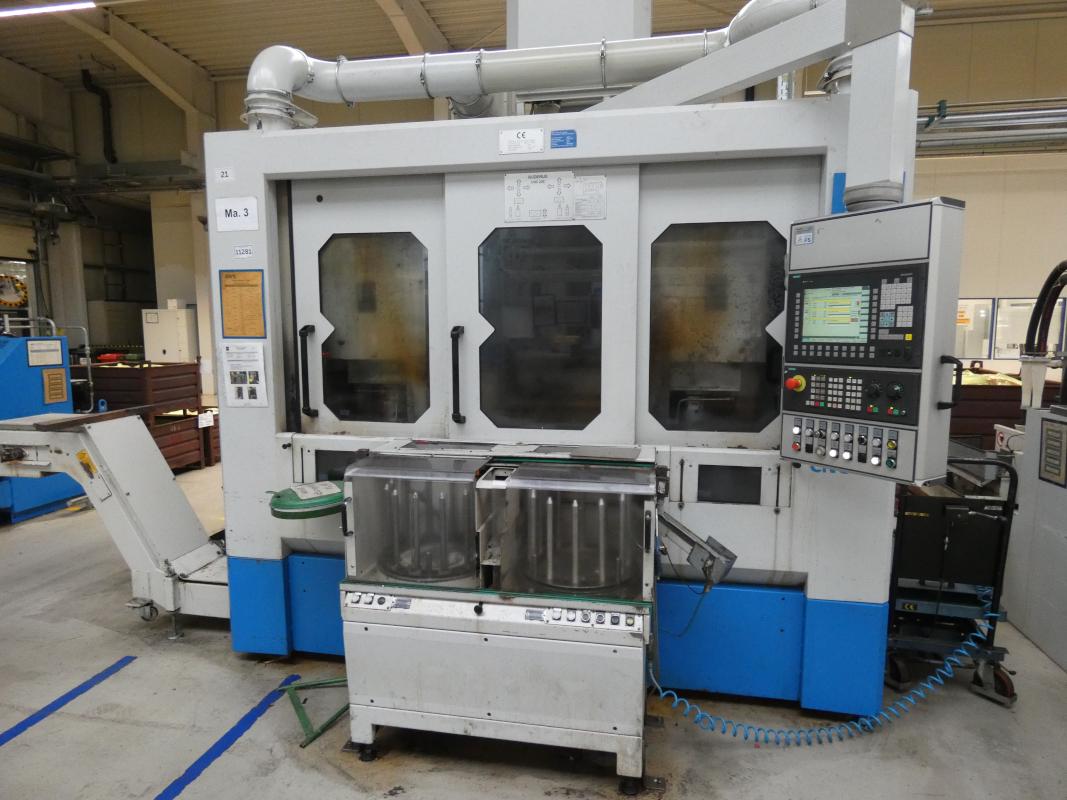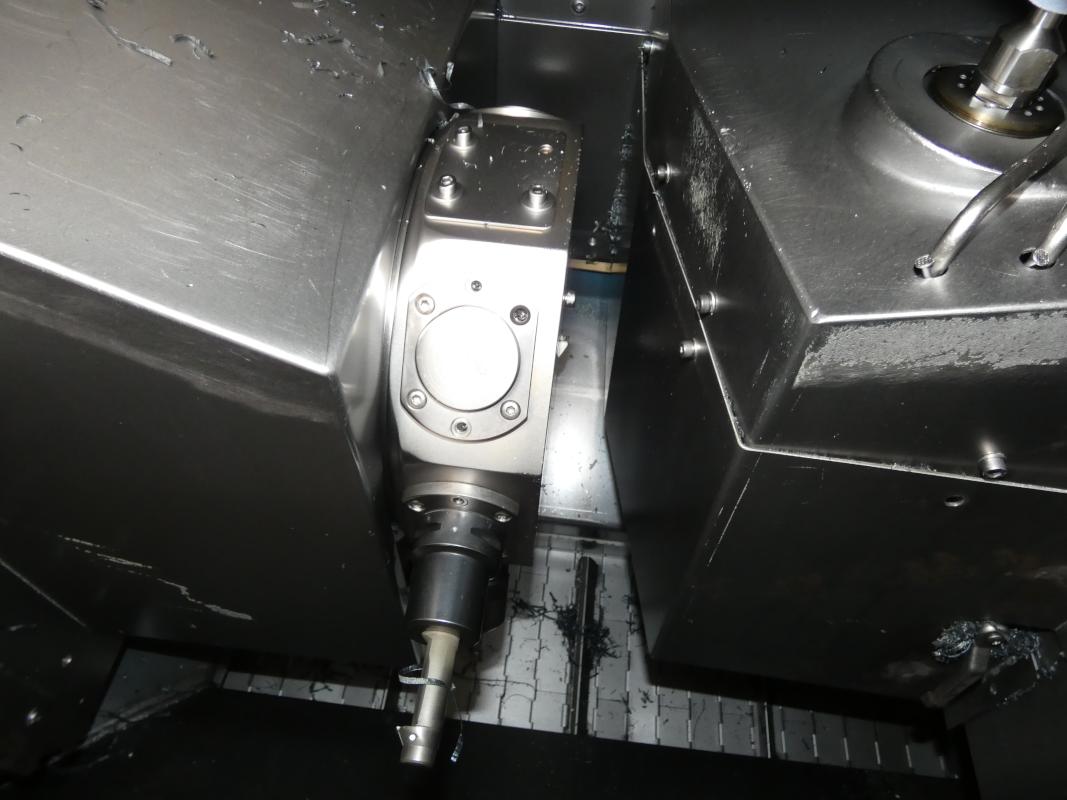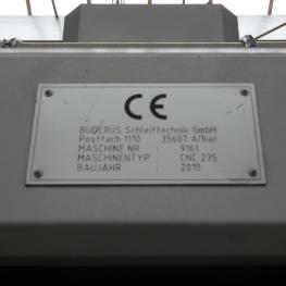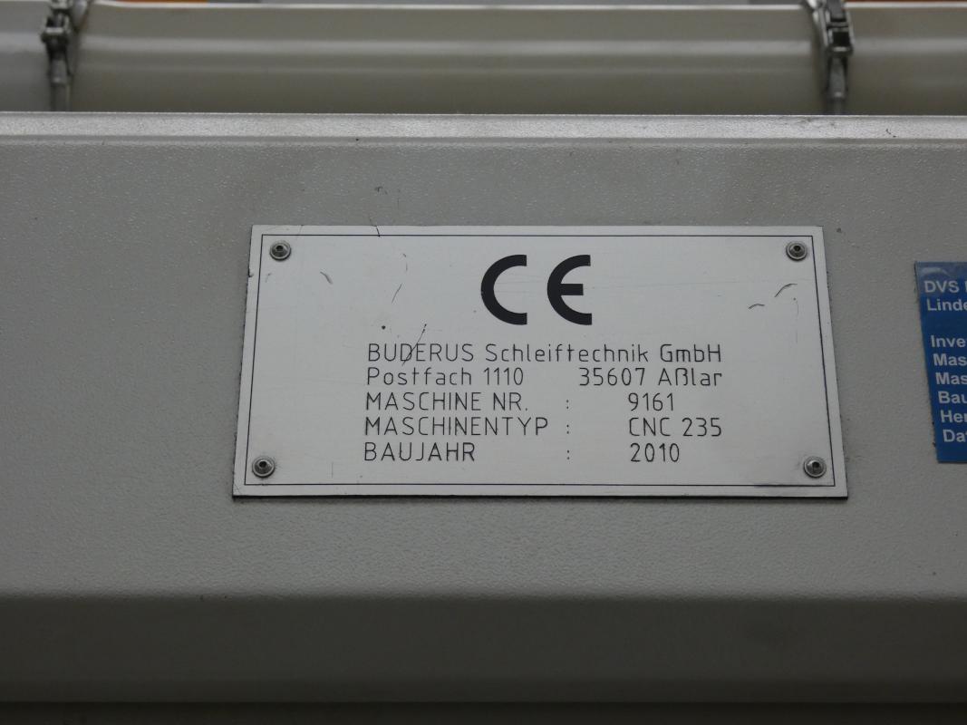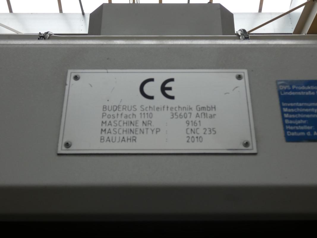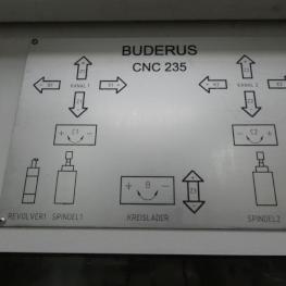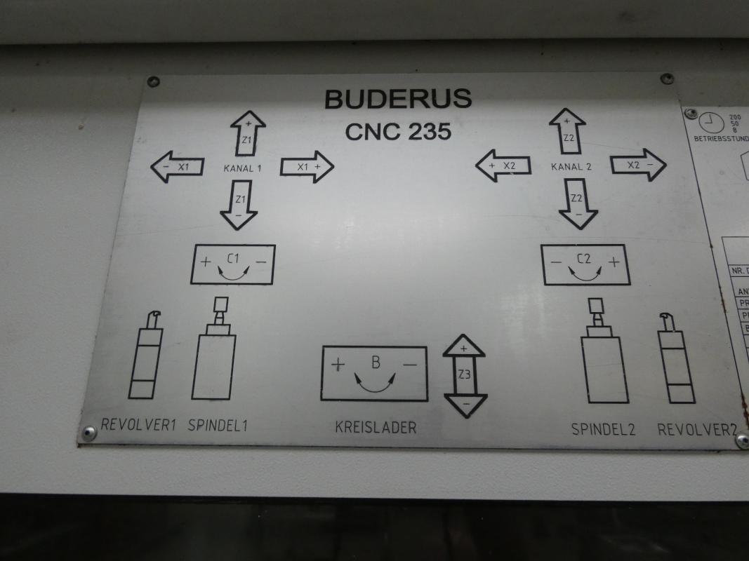 Make: BUDERUS, Model: CNC235, Year of construction: 2010, Machine No. 9161, Siemens Sinumerik 840D sl Powerline control, 2 work areas, 2 cross tables, X/Z travel, 2 spindles, spindle speed, C-workpiece speed: 2,000 rpm, high-speed internal grinding spindle: 60,000 rpm (for grinding mandrel), feed rates max. Z 30 m/min, X 90 m/min, workpiece diameter max. 100 mm, workpiece length max. 40 mm, , 2 x 8-position tool turrets, Capto C5 tool holder, workpiece automation with storage, conveyor system and gripper, coolant system, paper belt filter, oil separator, Mahle LGA601, oil mist extraction, recooling unit, Hydac, chip conveyor, Liqui, magnetic separator
