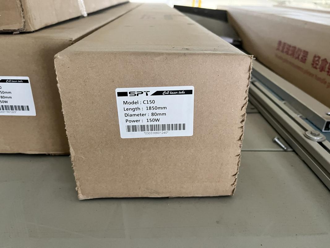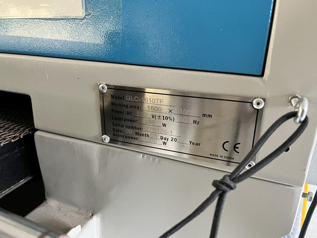 Make: DONGGUAN GLORYSTAR, Model: GLC-1610TF, Year of construction: 2017, Serial no.: 170126-1, Ser. no. 170126-1, working area 1,600 x 1,000 mm, laser class 4, power 150 W, operator panel, temperature control unit, mfr. S&A, type CW-5202AH, lot of CO₂ glass tubes, consisting of 8 pcs., mfr. SPT, type C150, L 1,850 mm, Ø 80 mm, power 150 W