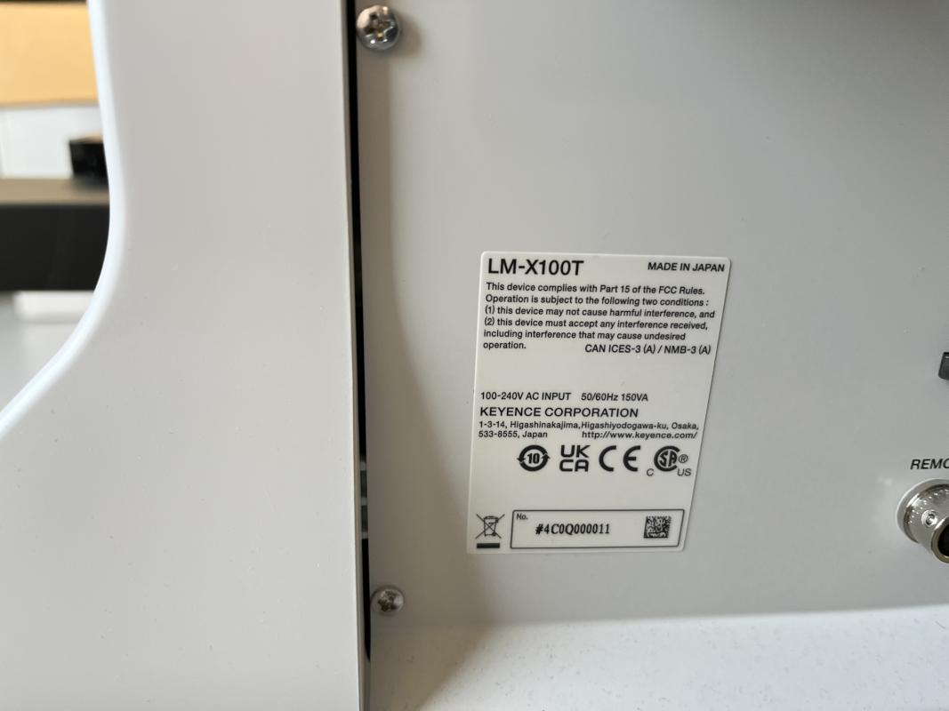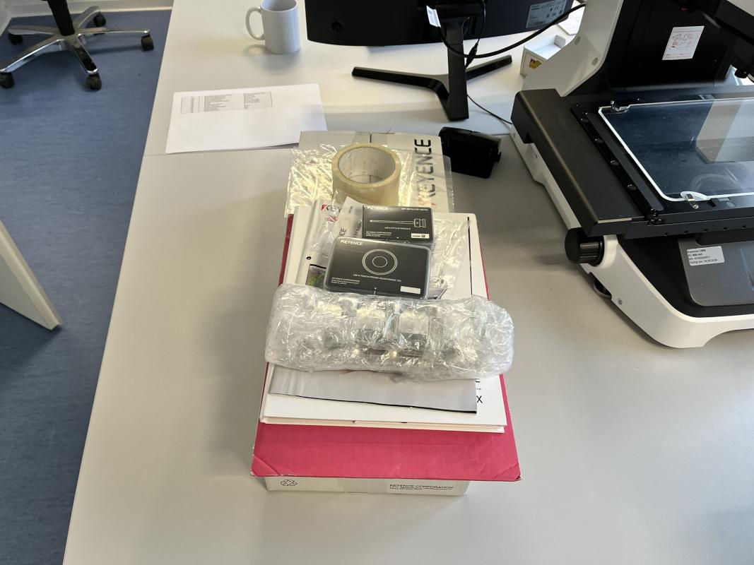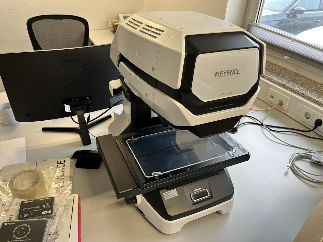 Make: KEYENCE, Model: LM-X100T, Serial no.: 4C0Q000011, Ser. no. 4C0Q000011, measuring methods: optical, tactile, laser-based, measuring range X/Y 248 x 141 mm, display resolution 1 μm, control PC, 27" LCD display, mfr. Philips, keyboard, mouse, lot of accessories / operating manual