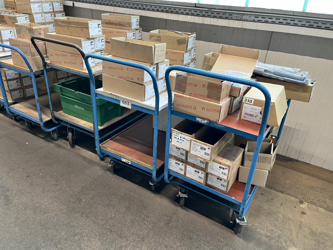 Consisting of: 3 pcs., 2 levels, approx. L/W 1,000 x 600 mm, various designs, without goods