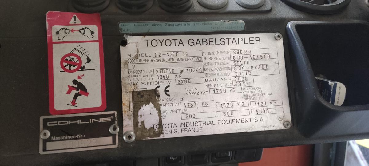 Make: TOYOTA, Model: 02-7FDF 18, Year of construction: 2000, Cab, duplex mast***Location of this item is in the Czech Republic***